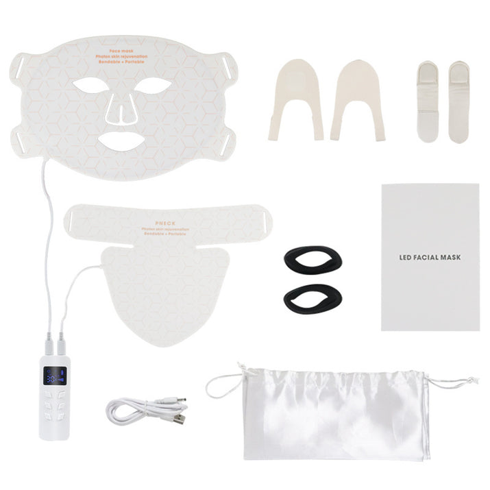 LED Silicone Mask Facial Neck Red Blue Light Household Skin Rejuvenation Mask